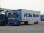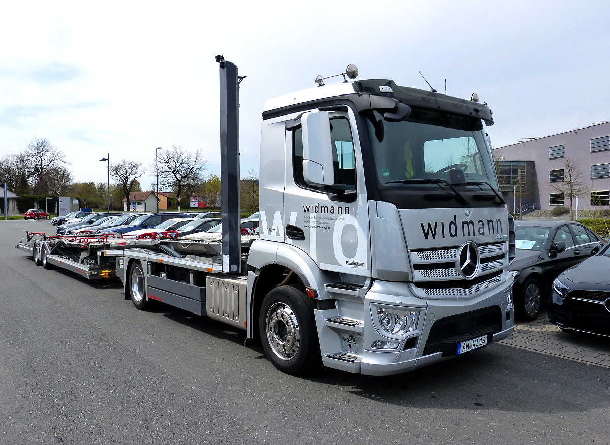 Noch richtig edel und neu glänzt dieser Mercedes Antos 1843 Autotransporter eines Autohauses in Weiden 16.04.2018