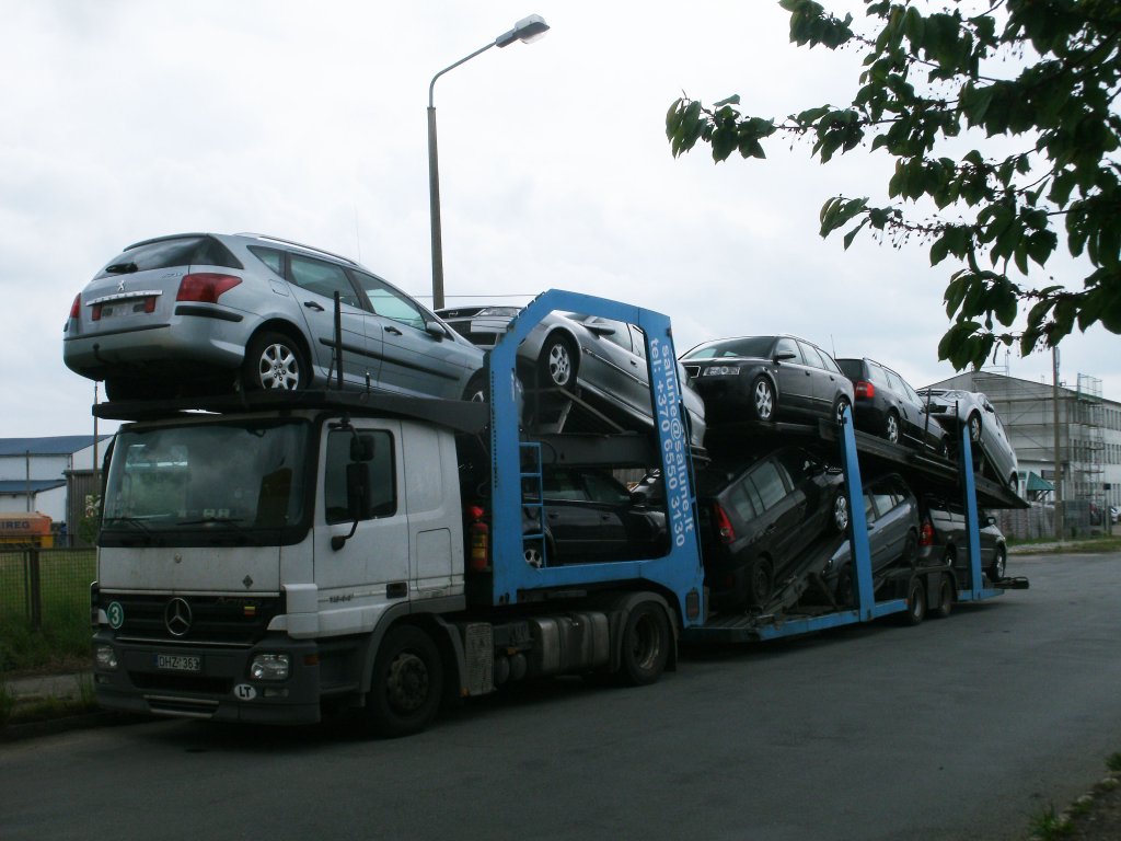 Mercedes-Autotransporter aus Litauen,am 18.Mai 2011,in Bergen/Rügen.