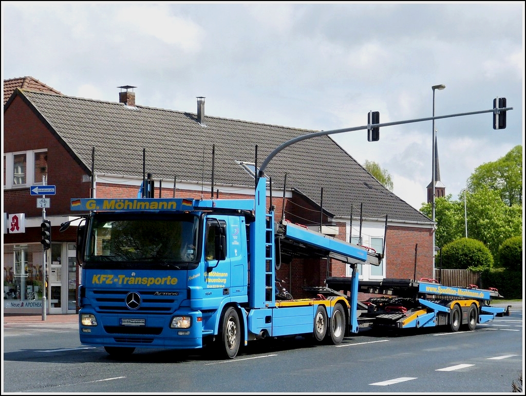 M-B Actros hat seine Fracht abgeladen und ist nun auf dem Heimweg. Varel, 09.05.2012.