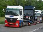 MB Actros MP2 Autotransporter von "Mosolf" beladen mit neuen Audis abgestellt in Nürnberg, 12.07.2012