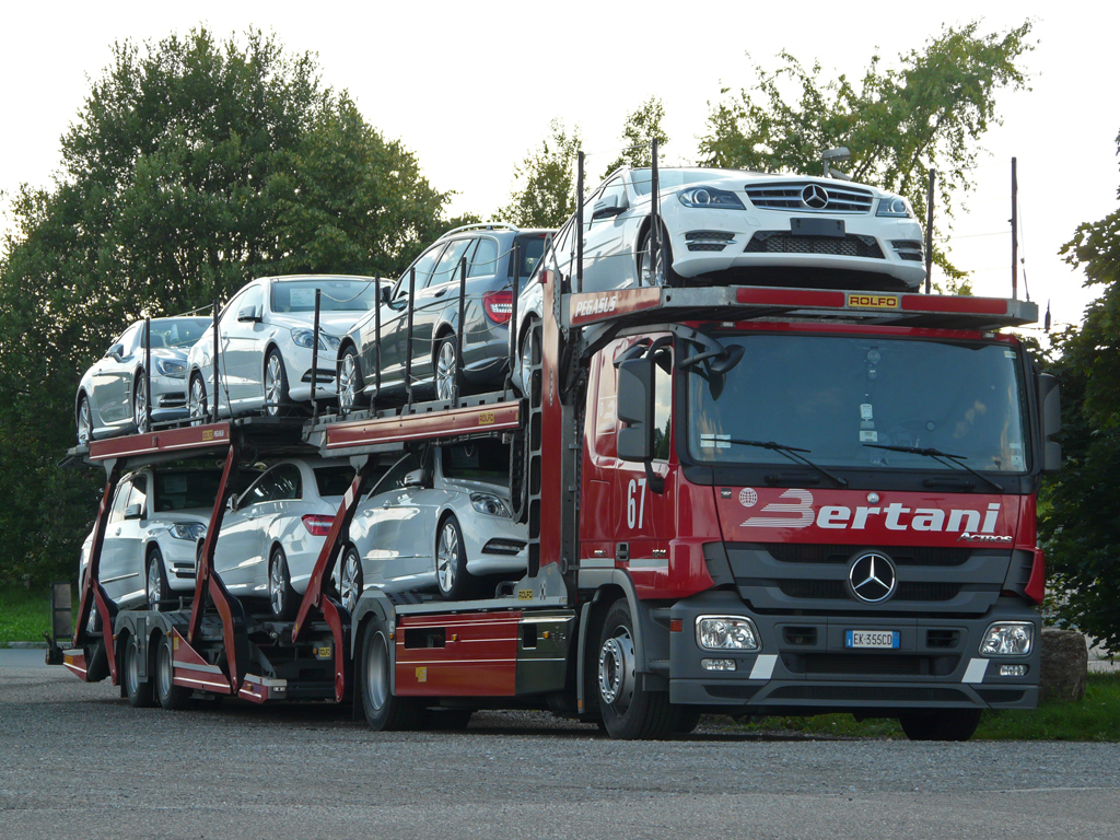MB Actros MP3 1841 Autotransporter von "Bertani" aus Italien pausiert auf dem Rasthof Wörnitz, 22.07.2012