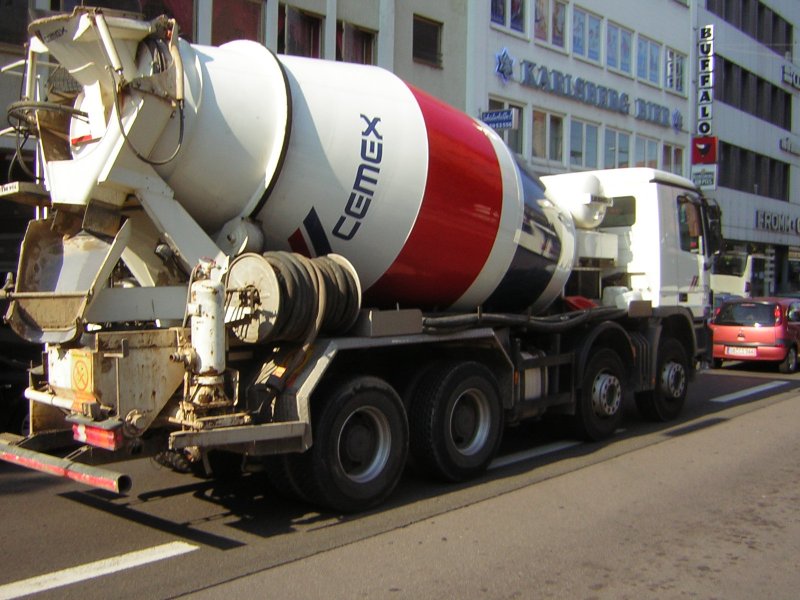 Auf diesem Foto ist ein Betonmischer zu sehen.Das Foto wurde in Saarbrücken Stadt aufgenommen.