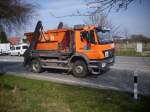 Mercedes Actros MP3 2541 Abrollkipper mit Frontkran bei der Wochenendruhe.9.9.2012