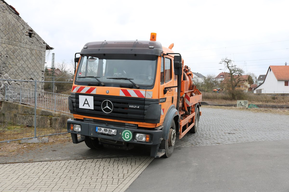 Mercedes Benz mit Kombinierten Saug-Spülaufbau mit Wasseraufbereitung am 24.03.18 in Neustadt (Hessen)