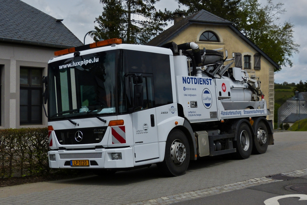 Mercedes Benz Econic 2833, im Einsatz bei der Kanal Reinigung in Erpeldange/Wiltz. 06.2021