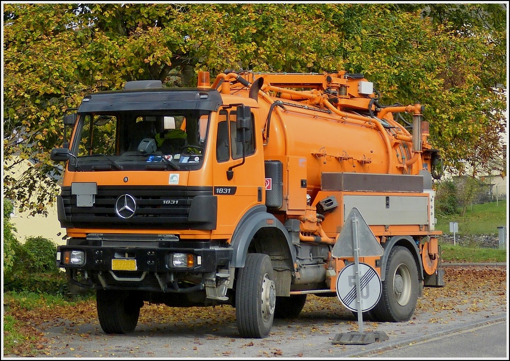 Am 22.10.2012 war dieser Mercedes-Benz 1831 mit Kanalreinigungsaufbau in der nähe einer Baustelle abgestellt.