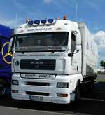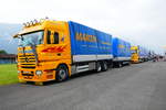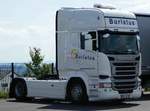 =MB Actros-Hängerzug der Spedition "BAUMGÄRTNER" steht beim Country-, Trucker- und Streetfoodfestival Fulda im Juli 2017