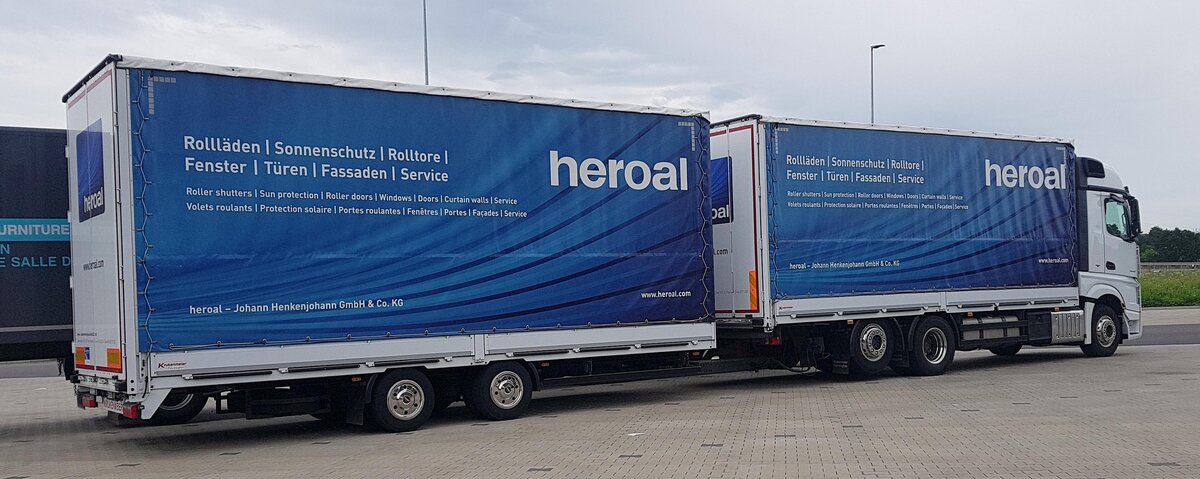 =MB Actros-Hängerzug der Firma HEROAL rastet im Juli 2021 an der A 7
