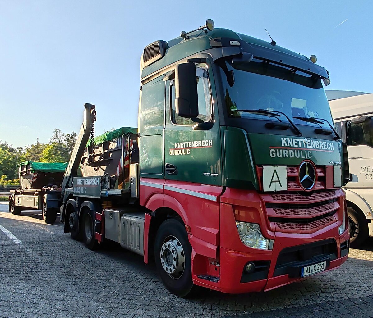 =MB Actros L-Hängerzug von "hsvsped" rastet an der A 7 im Juli 2025