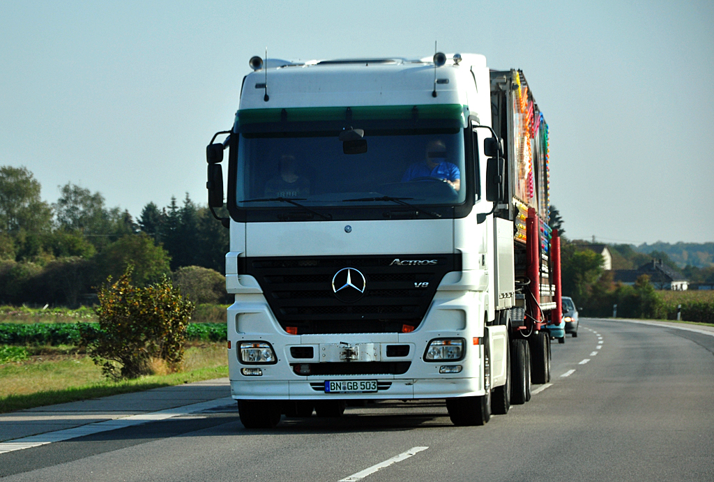 MB Actros V8 Schaustellerfahrzeug mit Hänger bei Heimerzheim - 04.10.2011