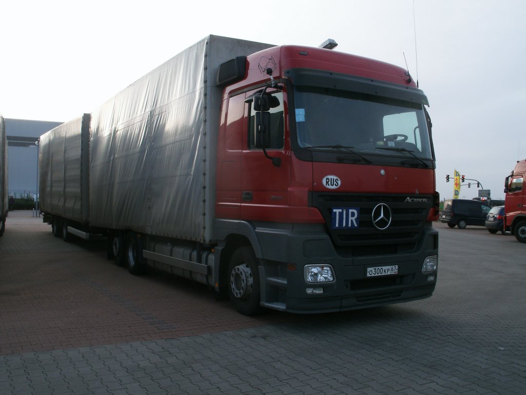 Ein russischer Mercedes-Hängerzug,am 09.Dezember 2011,in Bergen/Rügen.