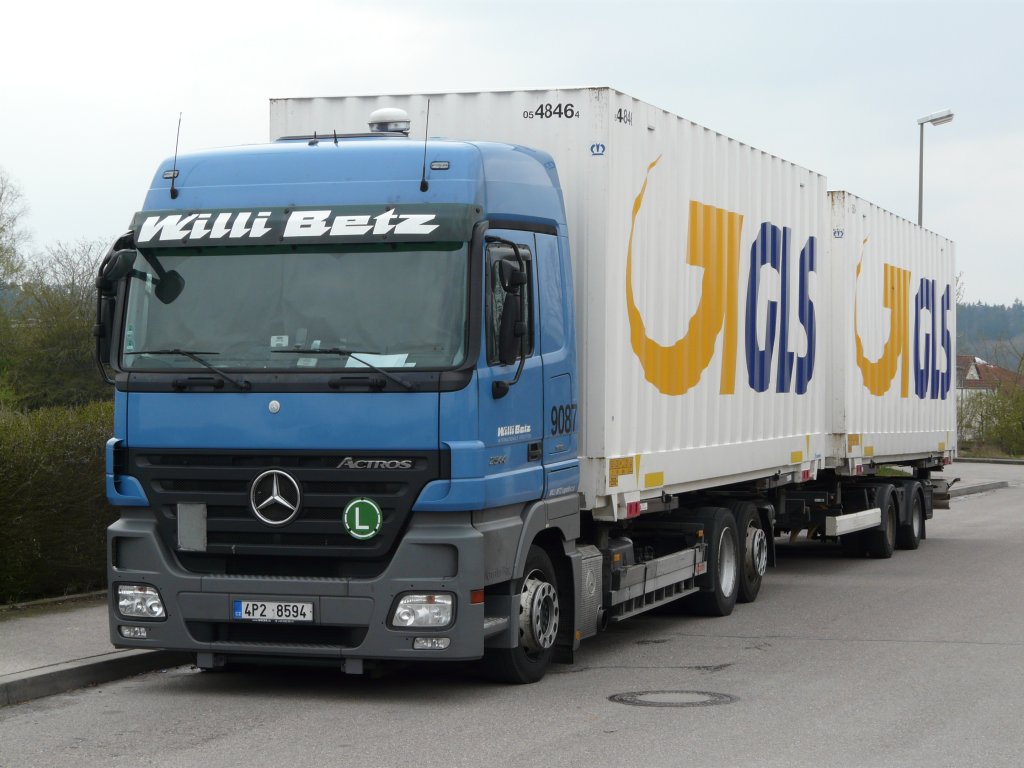 MB Actros MP2 2544 Tandem-Hängerzug von "Willi Betz" aus Tschechien mit Wechselbrücken von GLS, Feuchtwangen, 15.04.2012