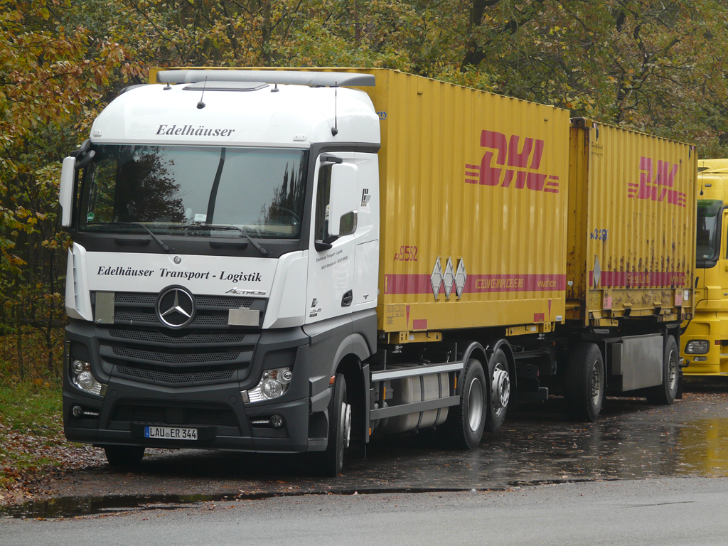 MB Actros 2545 Hängerzug von "Edelhäuser" mit Wechselbrücken von DHL abgestellt in Nürnberg, 01.11.2012