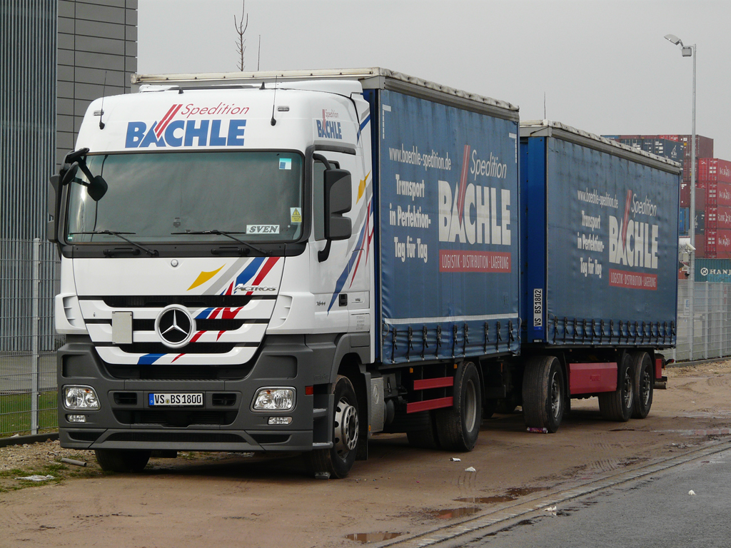 MB Actros MP3 1844 Hängerzug der Spedition Bächle abgestellt im Nürnberger Hafengebiet, 01.11.2012