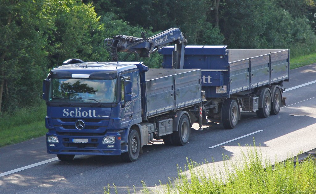 Mercedes Actros mit Hänger aufgenommen am 13.6.13 auf der A67 bei Groß Gerau.