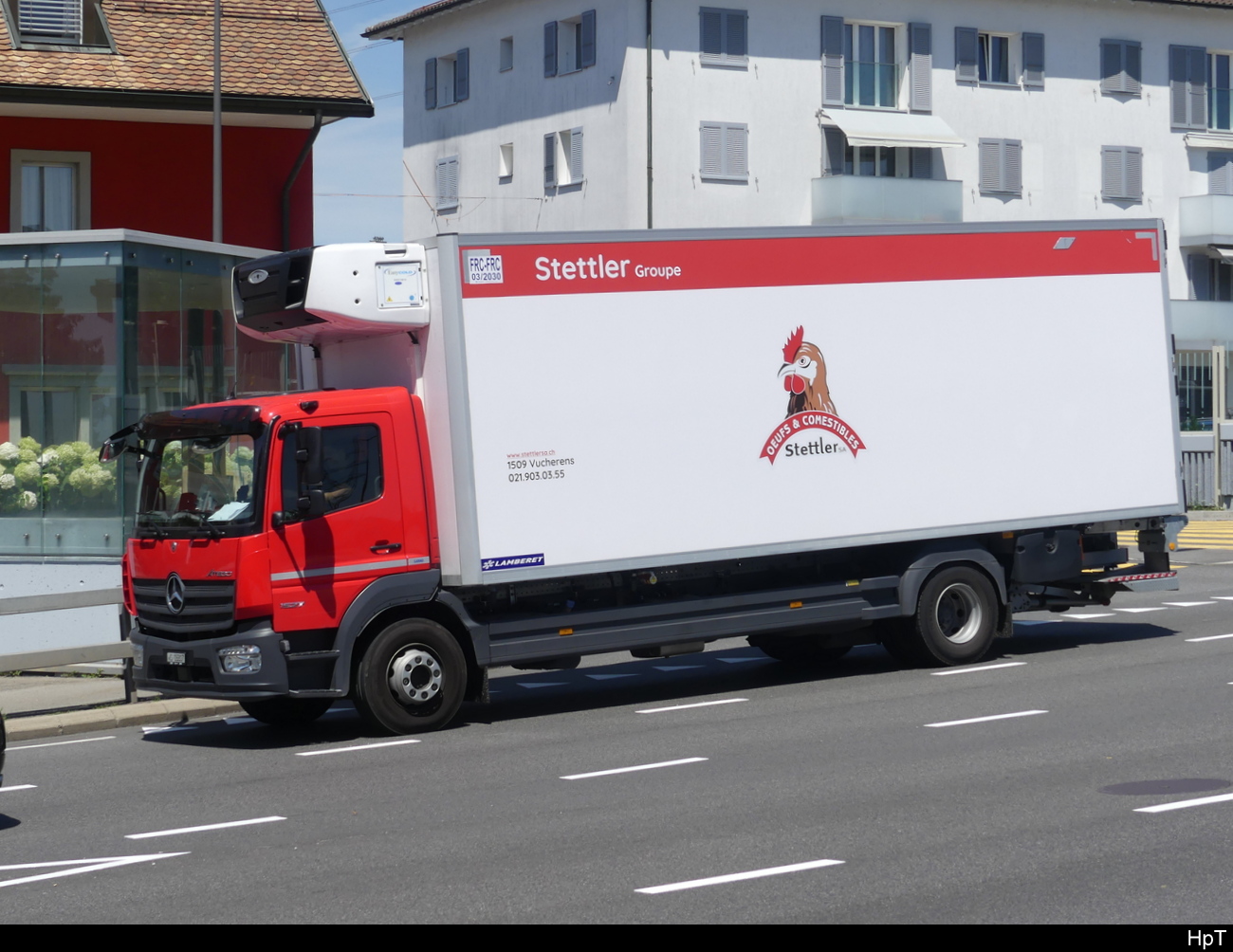 Mercedes mit Kastenaufbau unterwegs in der Stadt Lausanne am 2024.07.26
