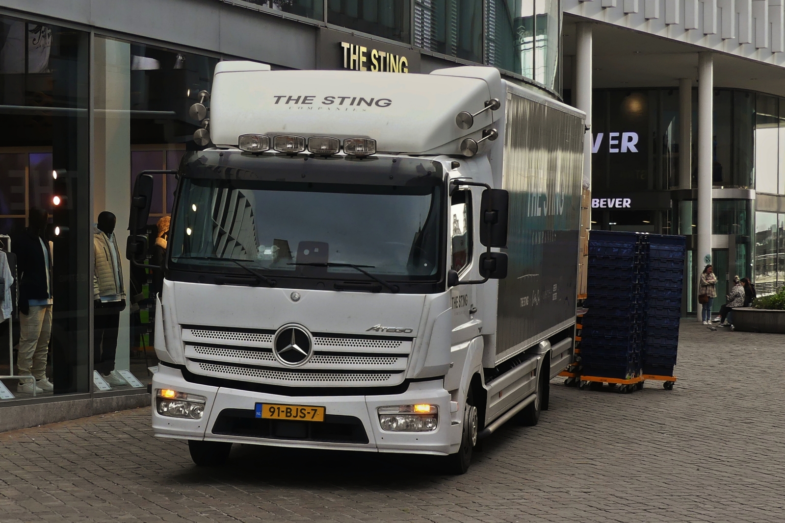 Mercedes Benz Atego, mit Kastenaufbau, beim Entladen in Maastricht. 12.09.2024