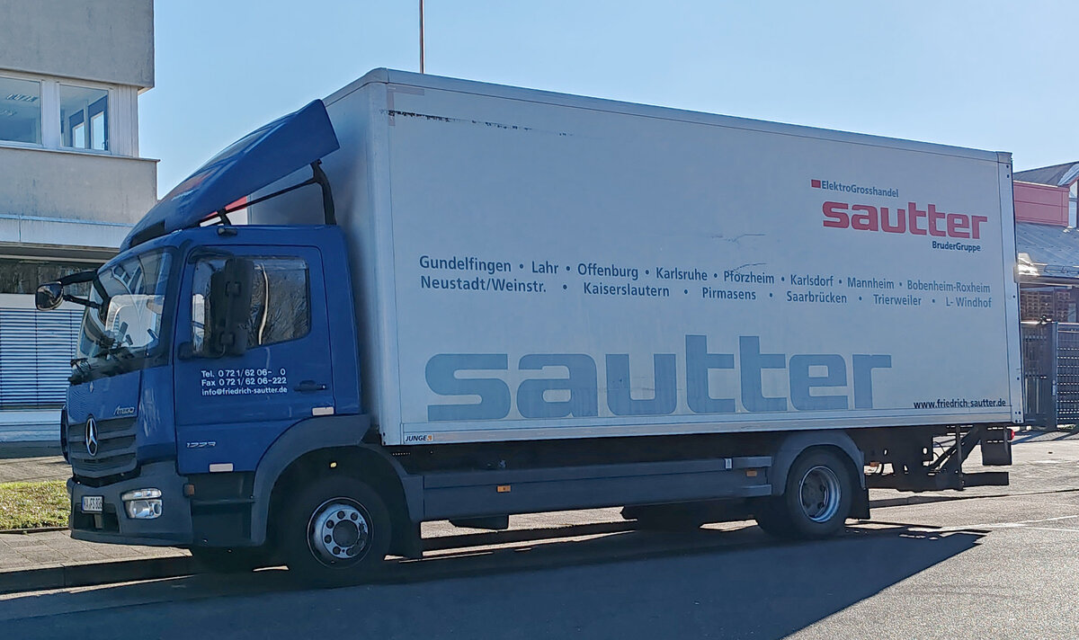 =MB Atego der Firma SAUTER steht im Februar 2025 in Karlsruhe