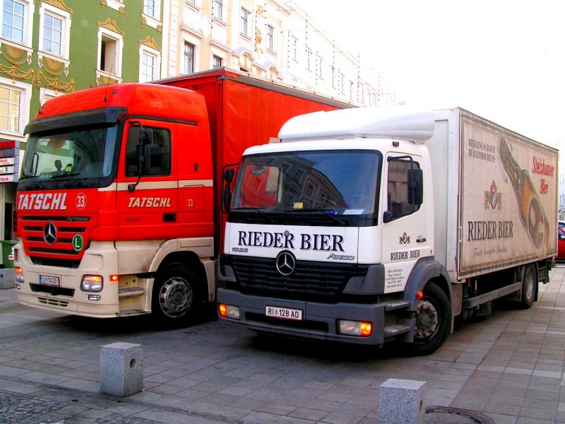 Mercedes_ACTROS2641 und ATEGO1828 im Zustelldienst in Ried i.I.; 080103