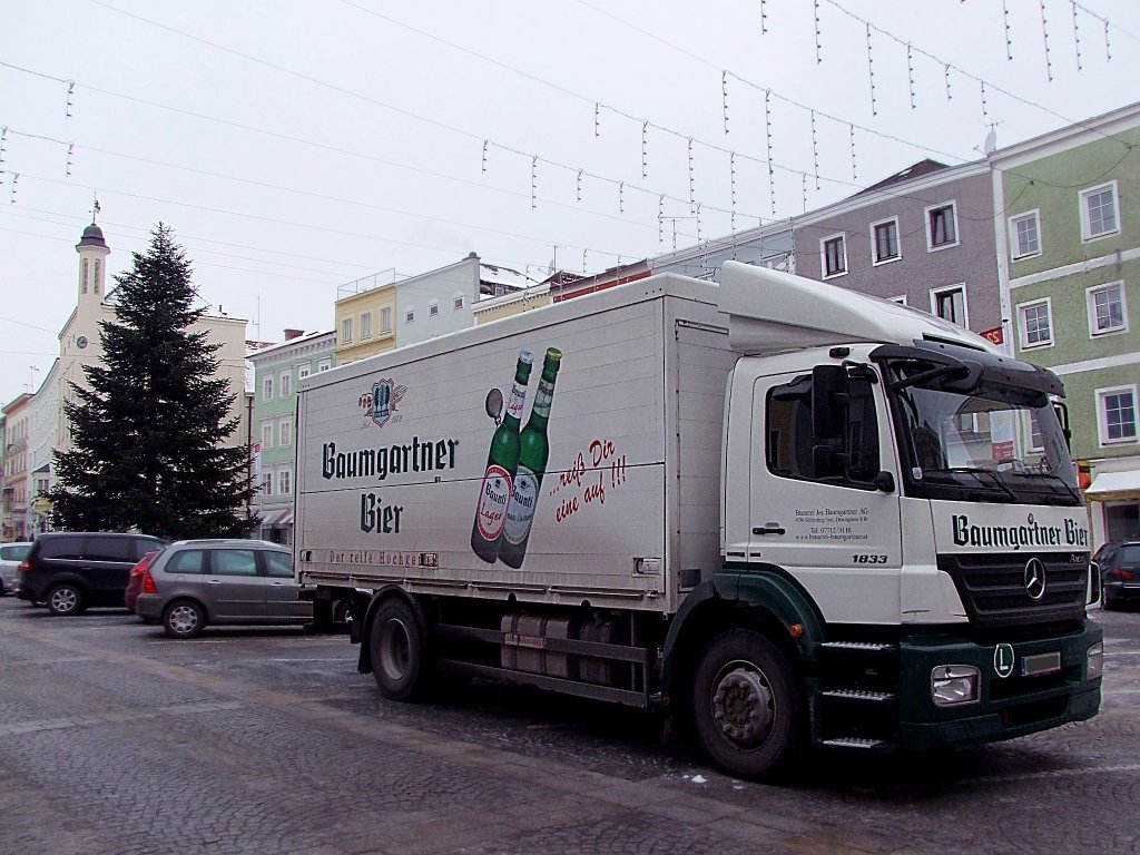 AXOR-1833 im Zustelldienst am Weihnachtlich geschmückten Rieder Hauptplatz;110104