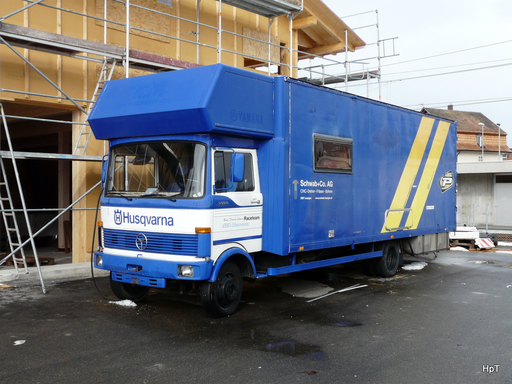 Mercedes mit Kastenaufbau unterwegs in der Stadt Biel am 04.11.2025
