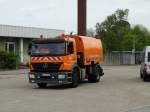 Mercedes Ateco 1823 Gleisreinigungs-Lastwagen, reinigt die Geleise auf der Haltestelle Morgartenring. Die Aufnahme stammt vom 27.06.2015.