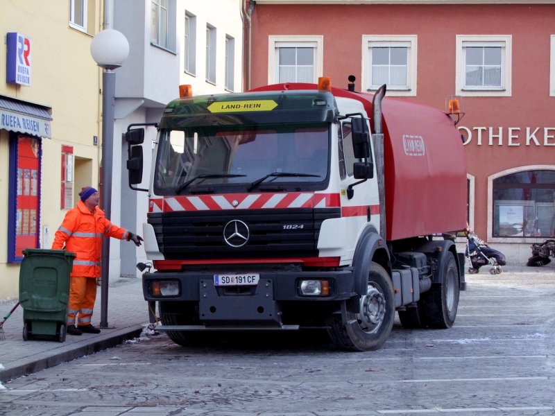 MB1824-Kehrmaschine ist zum Reinemachen nach dem Faschingsumzug am Stelzhamerplatz in Ried i.I. eingetroffen; 090215