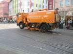 Mercedes Benz Axor als neue Kehrmaschine der Rostocker Straßenbahn AG stand am Morgen des 26.06.2014 um 04.14 Uhr in Höhe Haltestelle Kunsthalle(Rostock).