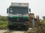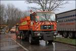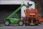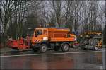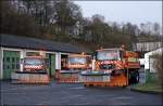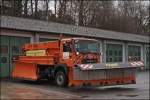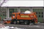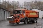 Am Nachmittag des 22.11.2008 tragen die Pflüge schon deutliche Spuren der vergagenen Einsätze. Hier der Actros 1831.