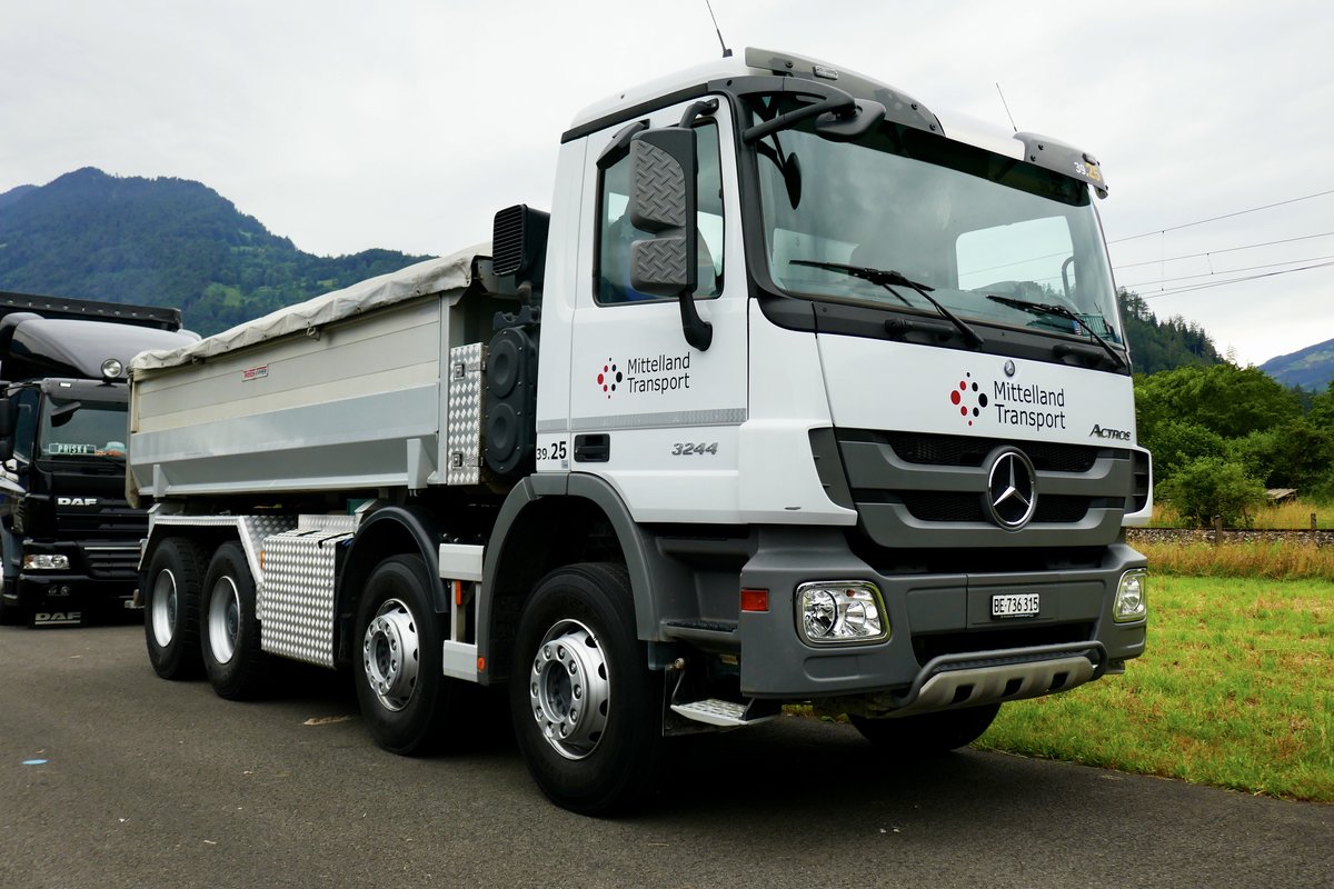 Ein MB Actros Kipper von Mittelland Transport am 26.6.16 beim Trucker Festival Interlaken.