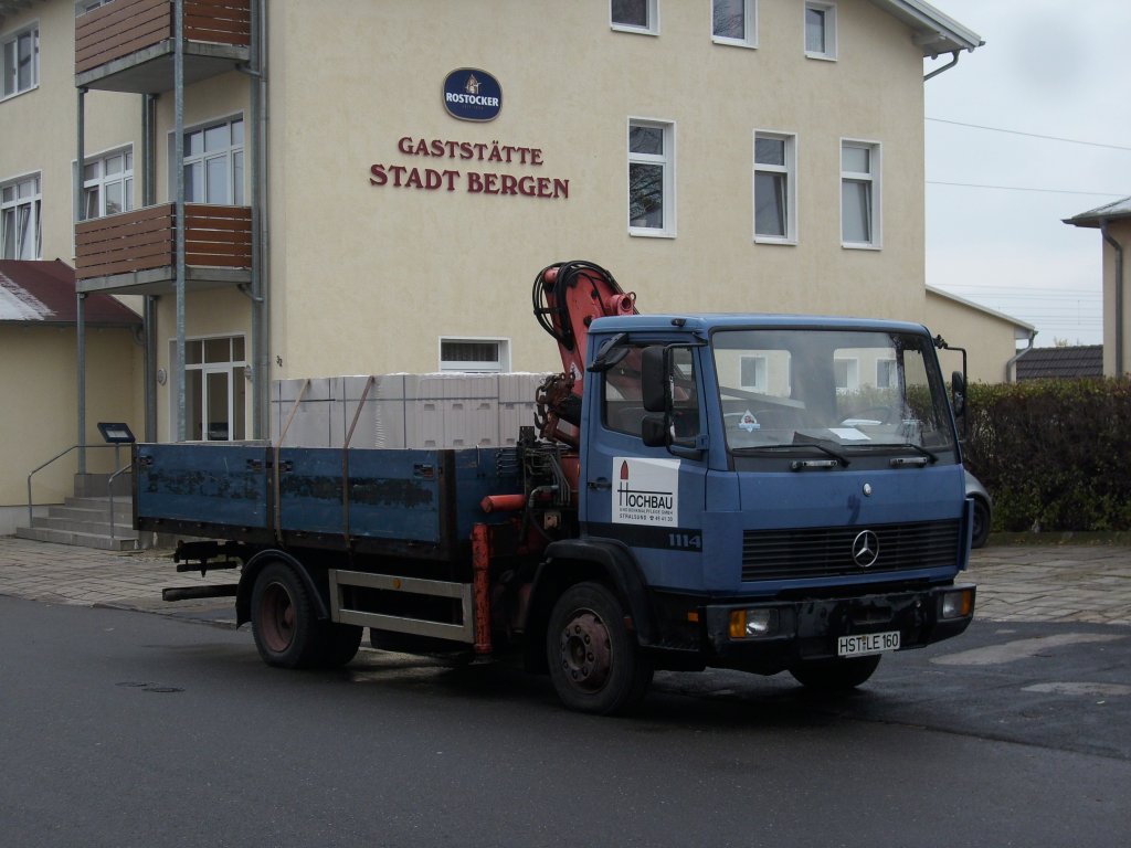 Vor meiner Haustür traf ich am 05.November 2009 diesen Mercedes-Kipper in Bergen/Rügen.