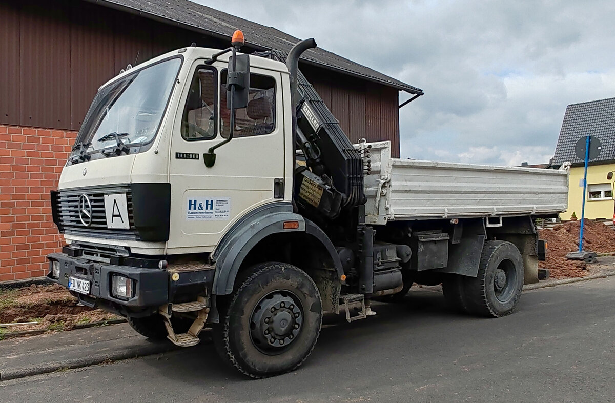 =MB Kipper vom Bauunternehmen H & H steht im Juli 2025 auf einer Baustelle in Petersberg-Marbach