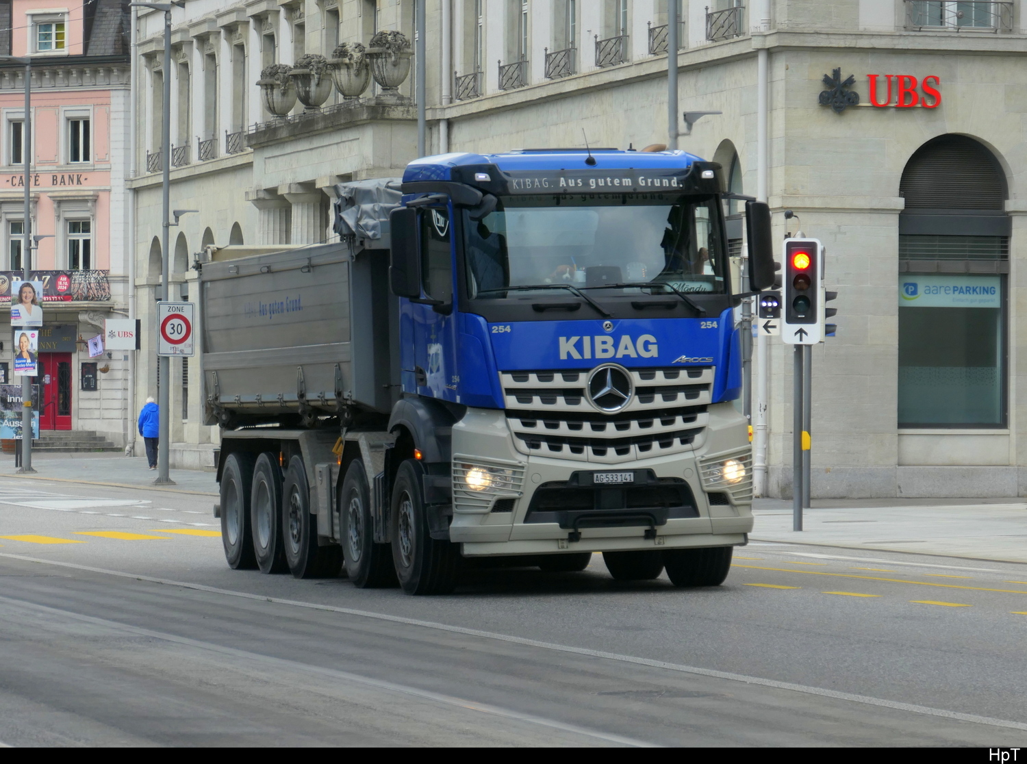 Mercedes Kipper unterwegs in der Stadt Aarau am 01.10.2025