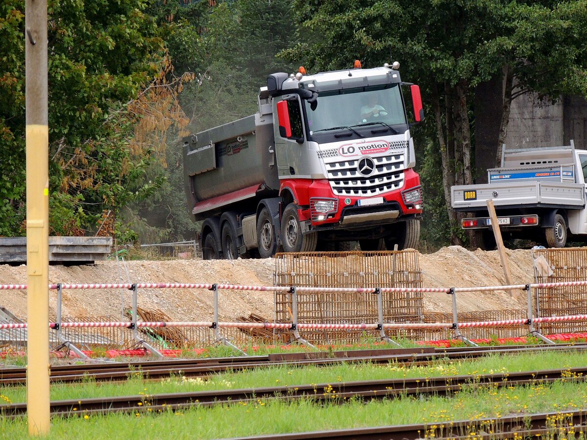 Komatsu PC 350 NLC und Mercedes Benz Actros 4144 auf einer Baustelle in Fulda-Bernhards am 13.06.08