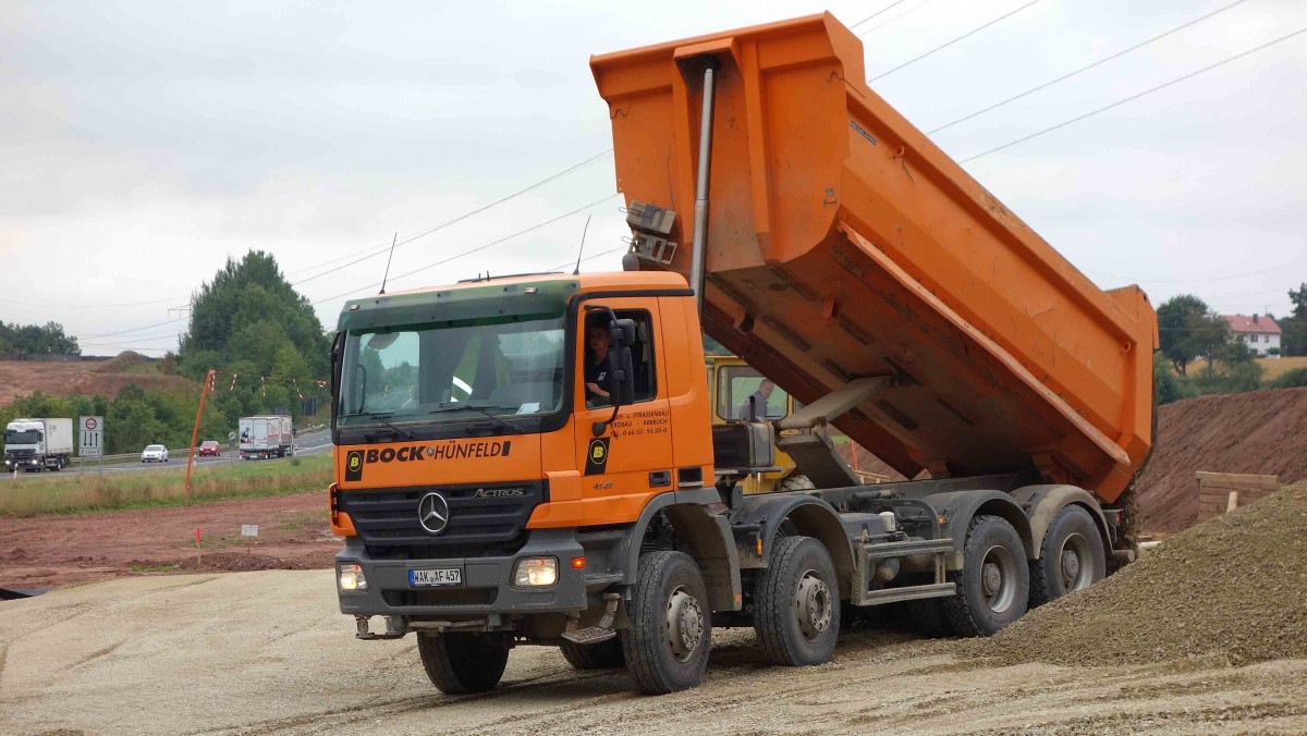 MB Actros der Firma BOCK bringt Kalkkies zur MIDAL-Baustelle Marbach Nord, August 2013