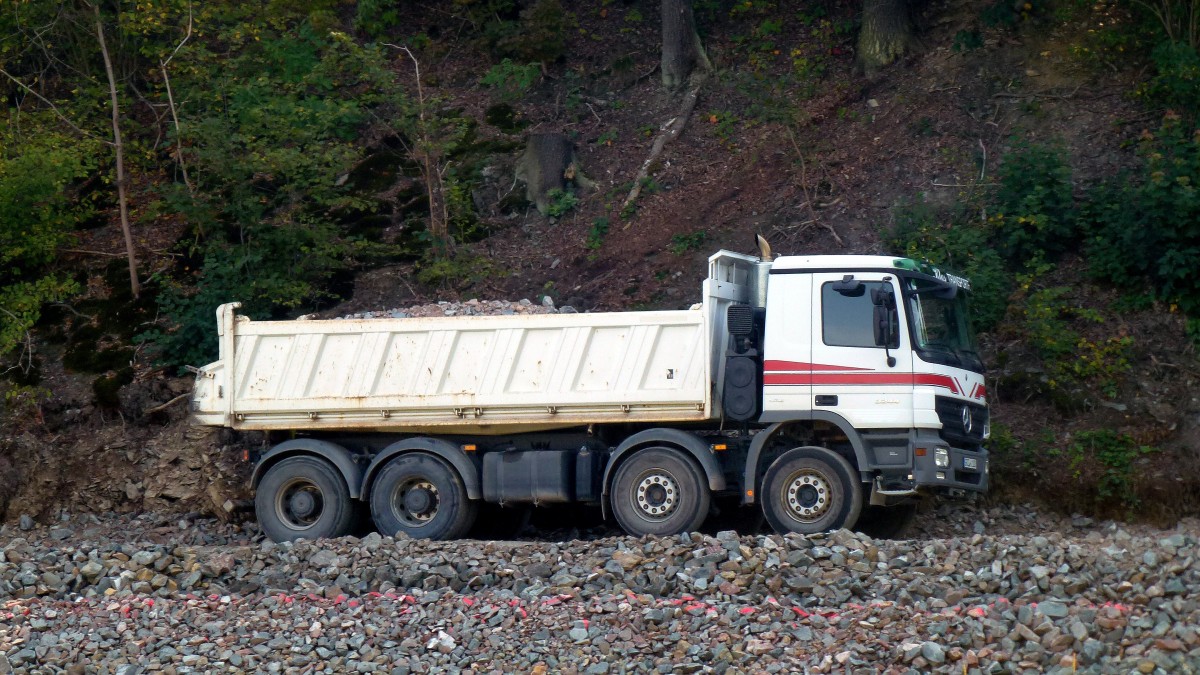 Mercedes Benz 3244 auf einer Baustelle. Foto 29.08.13