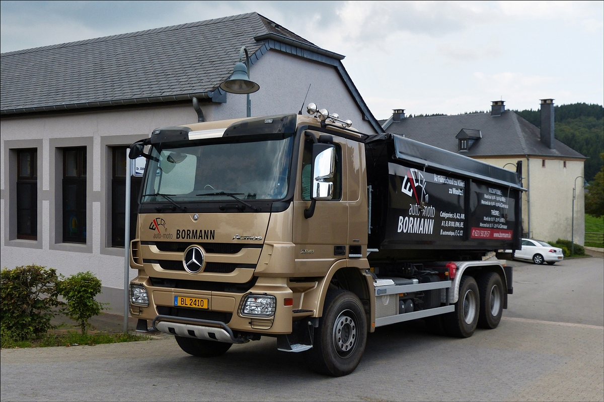 . Schöner Mercedes Benz Actros 2341 ist als Fahrschulfahrzeug unterwegs. 11.09.2014