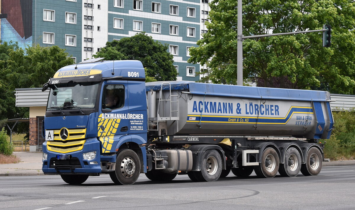 Spedition Ackmann & Lörcher GmbH & Co. KG mit einem MB ACTROS 1843 Sattelkipper am 14.06.23 Berlin Marzahn