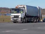 Trotz Wintereinbruch mußte die Stralsunder Müllabfuhr,mit ihren Mercedes,in den Stadtteil Knieper,am 17.Januar 2017,ausrücken.