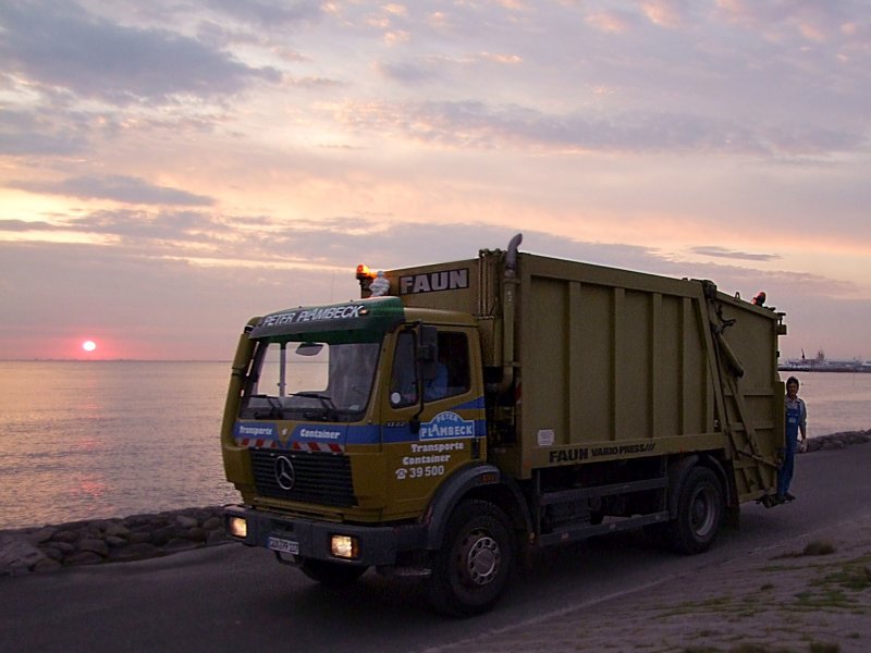 MB-1722 entleert schon Frühmorgens die Mülltonnen entlang des Elbufers in Cuxhaven;090825