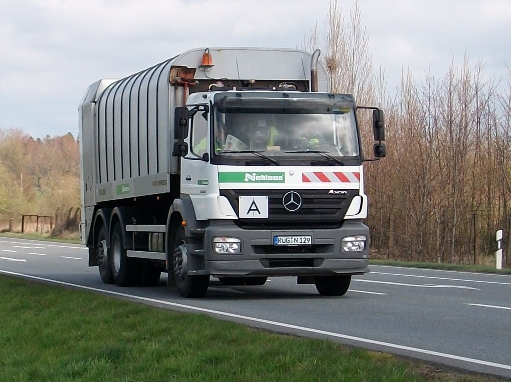 Mercedes-Müllfahrzeug am 27.April 2010 auf der B96 bei Bergen/Rügen.