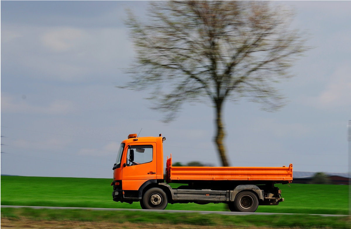 Mercedes-Benz Atego mit Pritsche, auf der L 164 (ex B221) bei Übach - Palenberg, mitgezogen am 10.4.2017