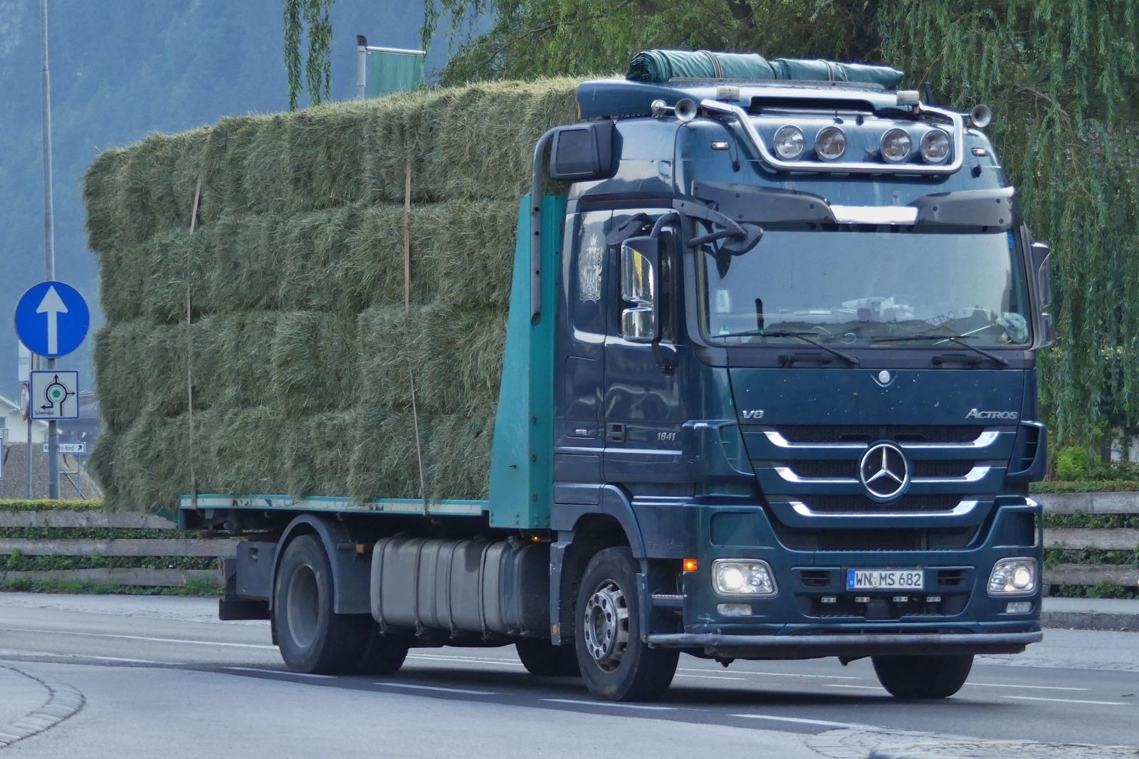 LKW Mercedes Benz Actros V8, 1841, beladen mit Heuballen unterwegs in Mayrhofen. 08.2024