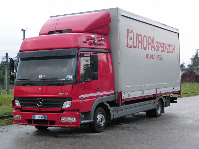ATEGO822 einer Italienischen Spedition in den frühen Morgenstunden beim Bhf. Attnang-Puchheim; 090811