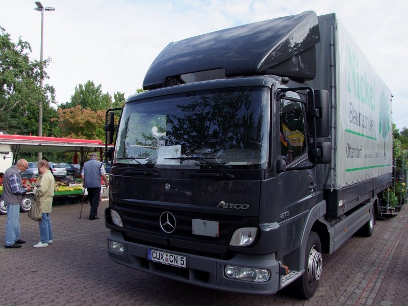 ATEGO818 einer Baumschule, mit seiner Ware am Wochenmarkt in Cuxhaven ;090829