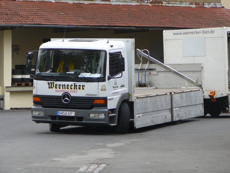 MB Atego der WERNECKER BRAUEREI wird gerade beladen, Werneck am 14.10.2009