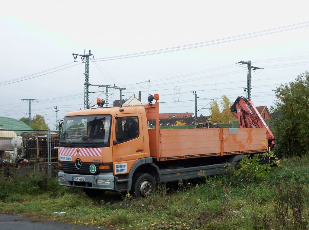 Mercedes LKW, mit Ladekran in Lehrte am 20.10.2010.