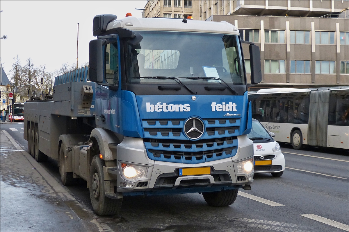 . Mercedes Benz Arocs,gesehen in den Straßen der Stadt Luxemburg. Januar 16