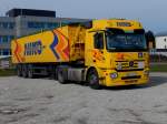 Mercedes Actros Sattelschlepper unterwegs in der Stadt Biel am 09.05.2016