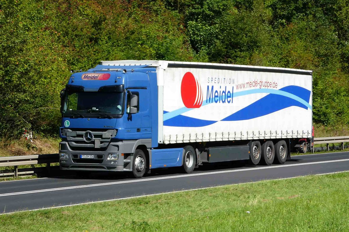 =MB-Sattelzug der Spedition "MEIDEL" unterwegs auf der B 27 im August 2016